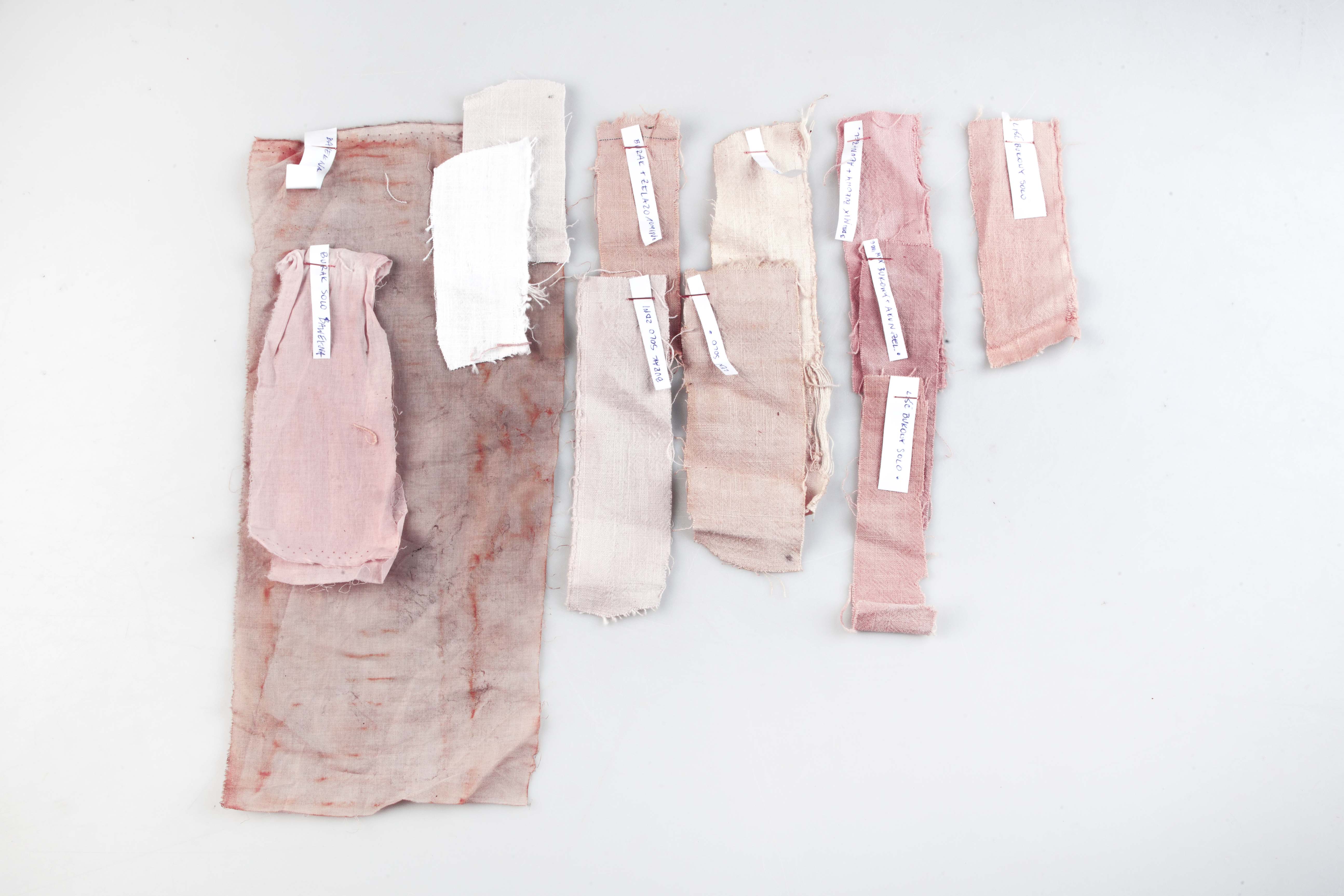 Eksperyment koncentrował się na naturalnym farbowaniu włókien lnianych, zarówno bielonych, jak i surowych, o różnej gramaturze.