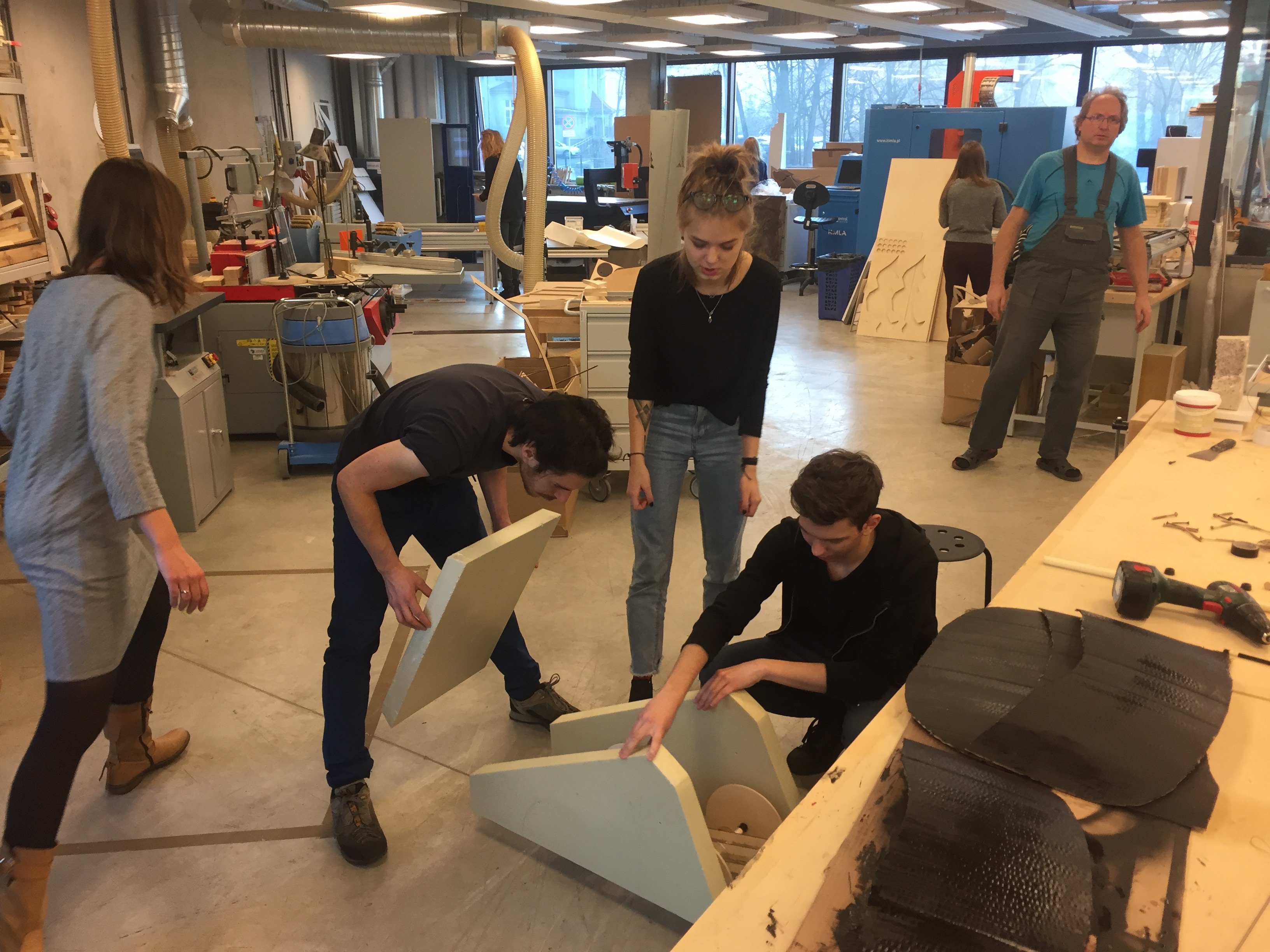 Praca w Modelarni odbywa się pod opieką wykwalifikowanej kadry technicznej i dydaktycznej, która wspiera studentów w doborze technologii, materiałów i narzędzi. Infrastruktura zapewnia warunki zbliżone do standardów przemysłowych, rozwija kompetencje manualne i cyfrowe oraz uczy świadomego, bezpiecznego korzystania z nowoczesnych technologii.