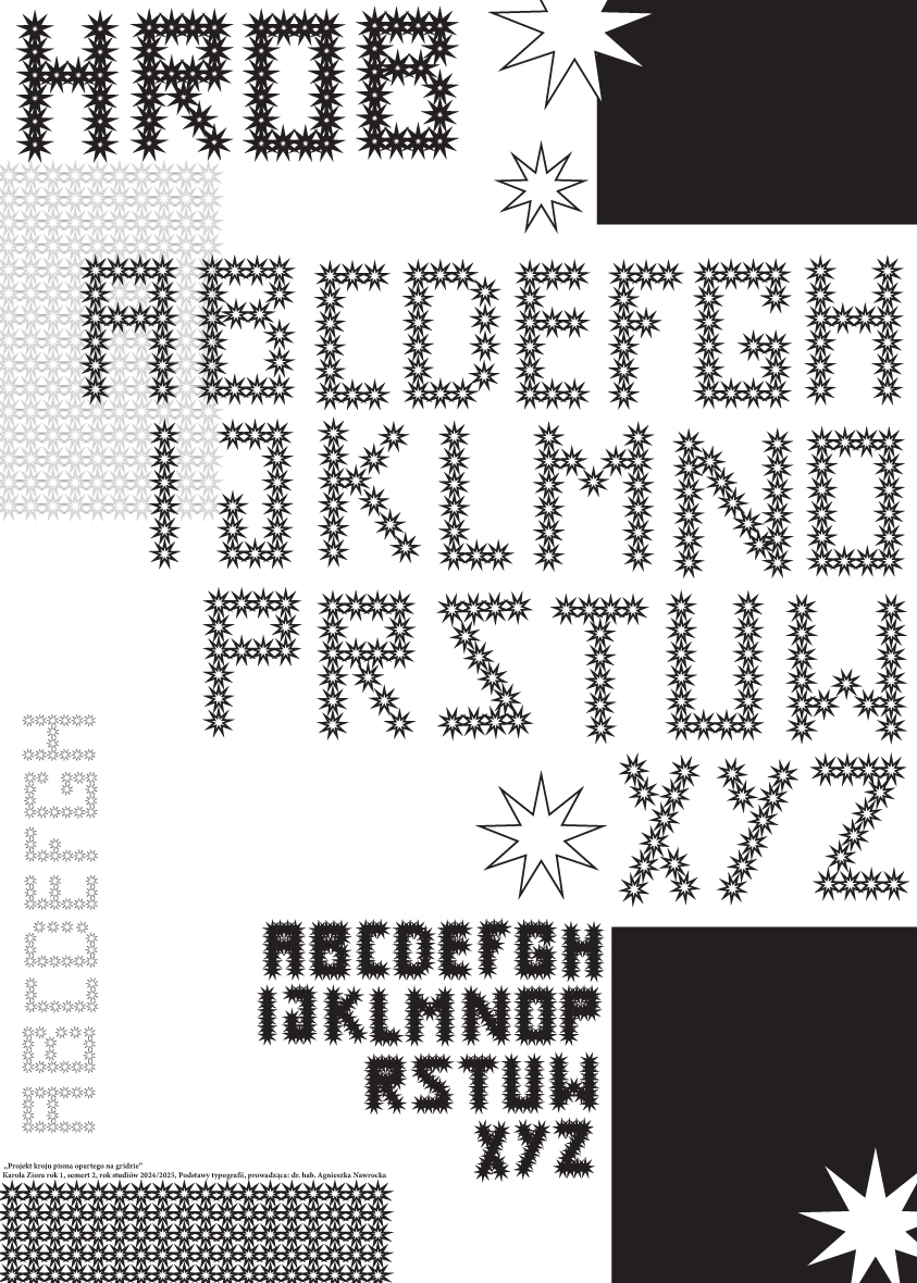oraz projektowaniu krojów pisma. W toku zajęć realizowane będą zarówno tematy wieloetapowe,