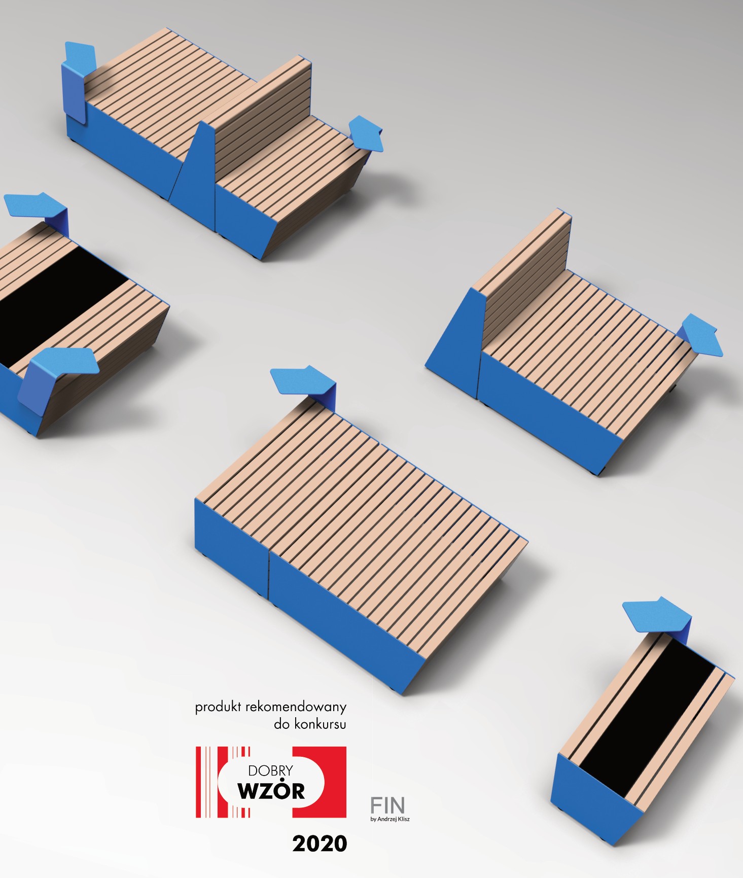 - Produkt rekomendowany w konkursie DOBRY WZÓR w dziedzinie Sfera Publiczna, Instytut Wzornictwa Przemysłowego Warszawa, za projekt kolekcji mebli publicznych z panelami solarnymi Smart City FIN. Wdrożenie firma Komserwis z Trzebini, Warszawa 2020 r.