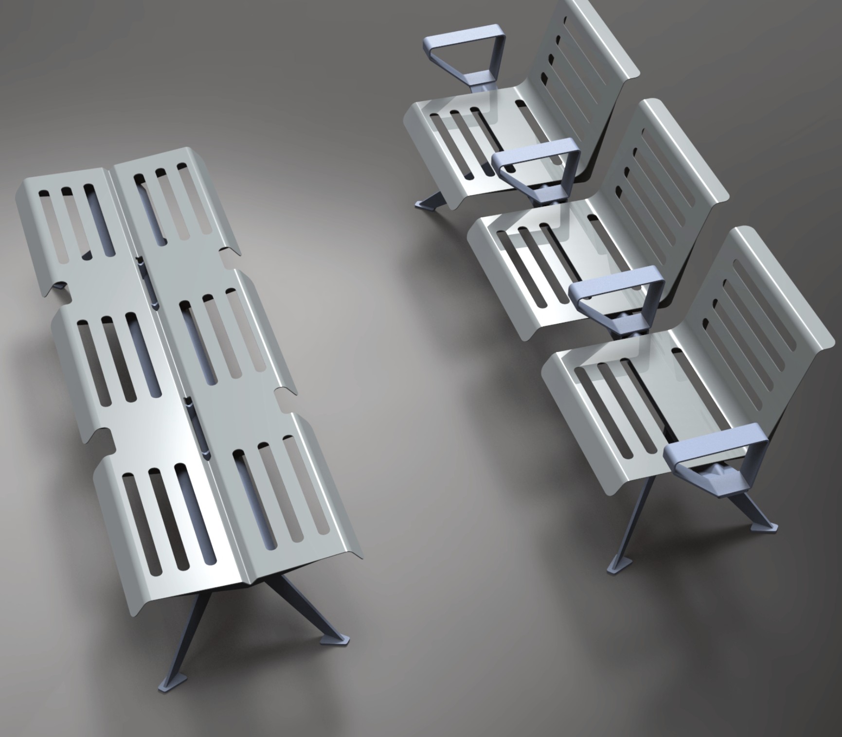 — Projekt kompletu mebli miejskich: ławki w kilku wersjach, leżak, stolik piknikowy, przysiadek, stojak rowerowy, słupek, projekt ławek z wysokim oparciem (w dwóch wersjach) o nazwie MILLO. Zleceniodawca firma Komserwis, Trzebinia, 2018 r.