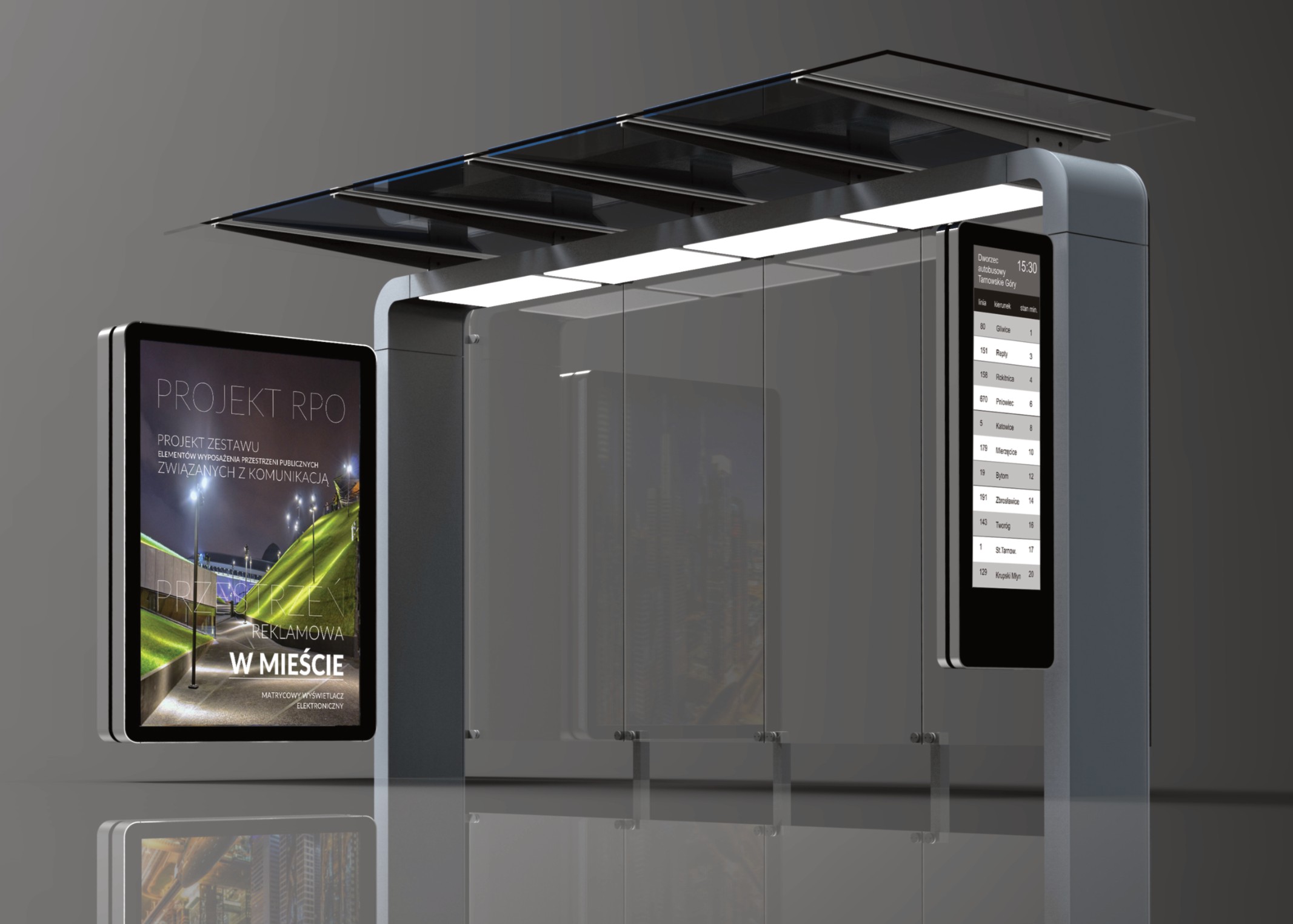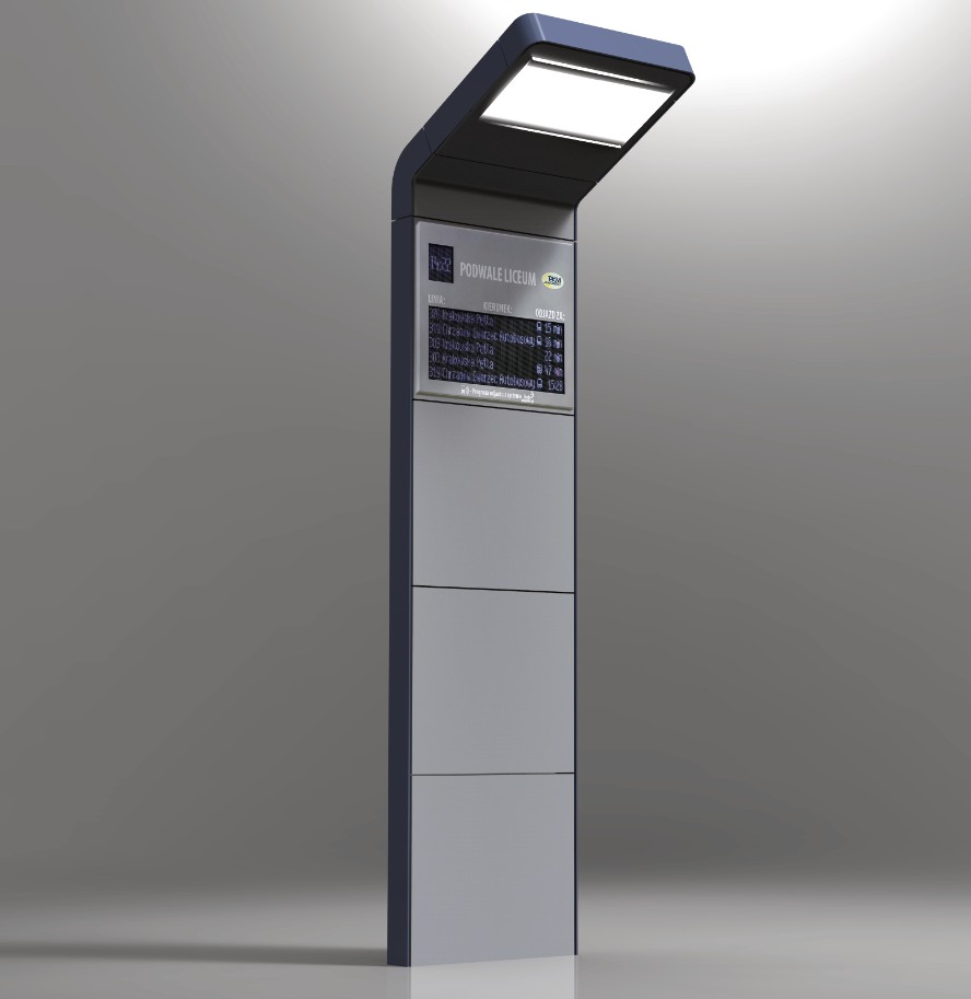 — Projekt serii obiektów dla komunikacji miejskiej o nazwie MOBI. Projekt zawiera: wiatę przystankową w dwóch wersjach, wiatę przystankową/peronową z możliwością instalacji paneli fotowoltaicznych w zadaszeniu, wyposażoną w oświetlenie Led i funkcje smart, ławki – kilka rodzajów, kosze – kilka rodzajów, kosz na śmieci segregowane – zestaw uwzględnia możliwość instalacji panelu fotowoltaicznego a także miejsca na akumulatory + funkcje smart (czujnik wypełnienia), tablicę informacyjną w formie totemu, słupek w wersji wolnostojącej z możliwością łączenia z wypełnieniem, panel ogrodzeniowy, element łączący słupki pozwalający na stworzenie wygrodzenia części przestrzeni, stojak rowerowy z możliwością budowy zestawów wielostanowiskowych. Zleceniodawca firma Komserwis, Trzebinia, 2018–2020.